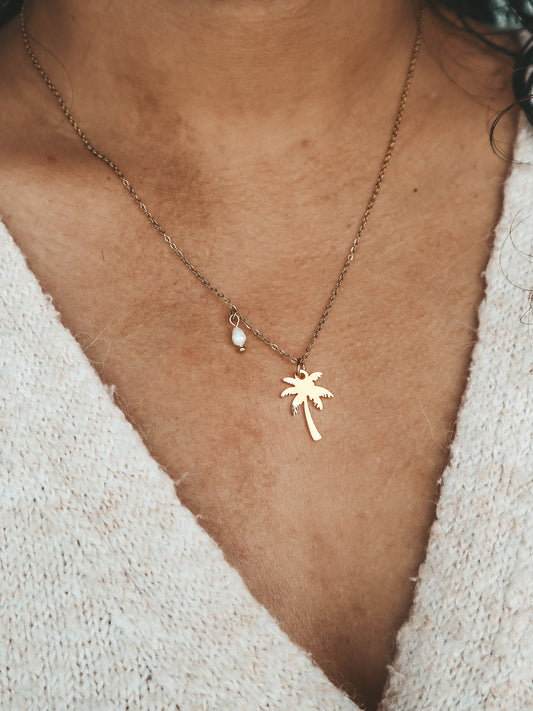 Coconut Tree with Pearl Gold Necklace by Bali Soul