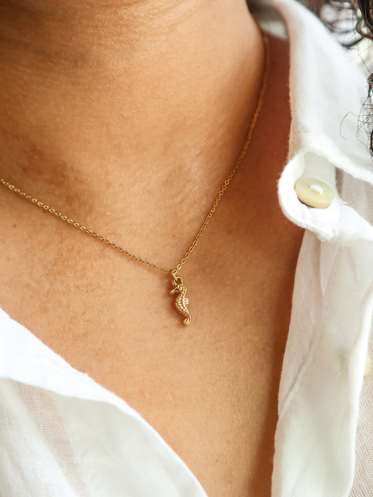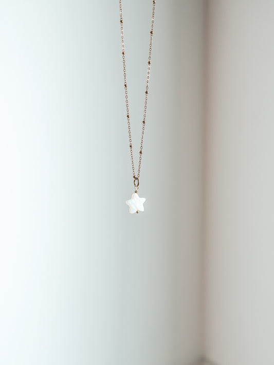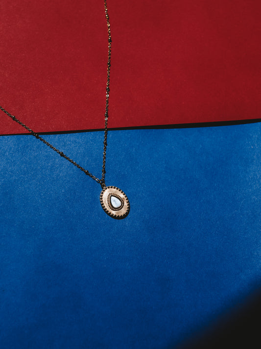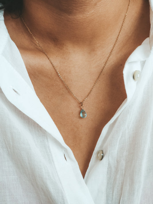 Ocean Breeze Glass Teardrop Akoya Shell Gold Necklace
