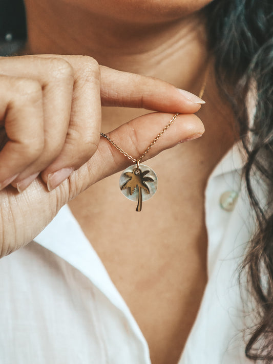 Sunset in Bali Akoya Shell Palm Tree Necklace