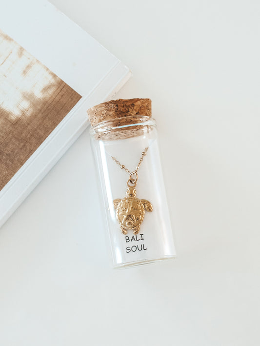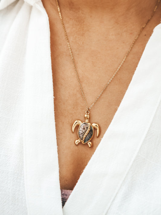 Sea Turtle Abalone Shell Gold Charm Necklace