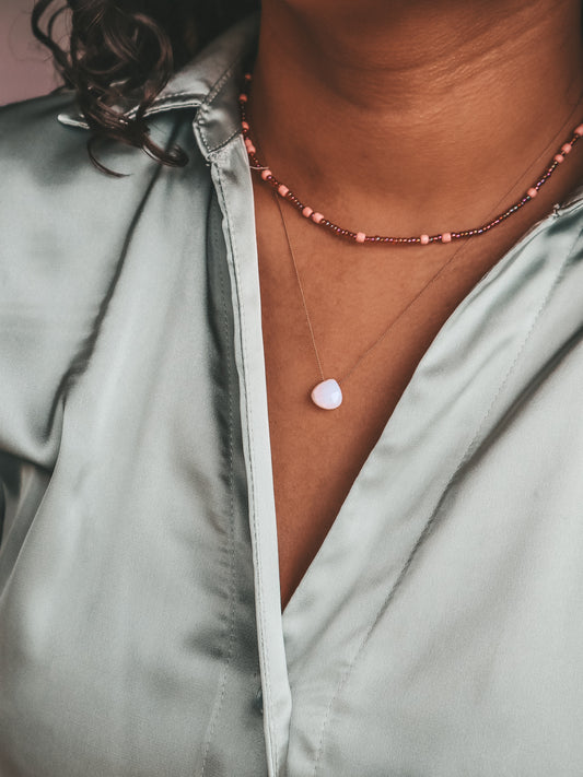 Strawberry Quartz Gemstone Silk Cord Necklace