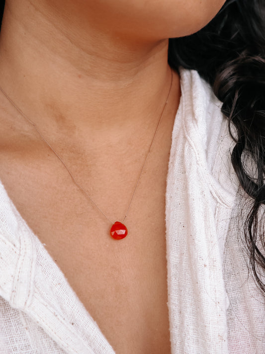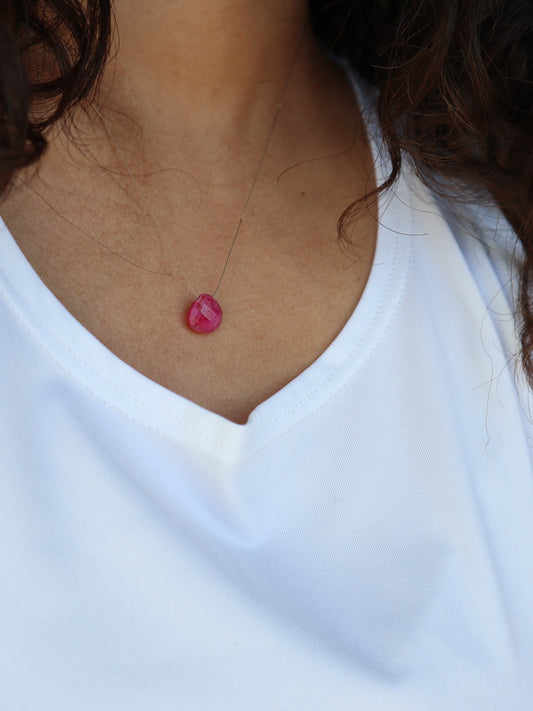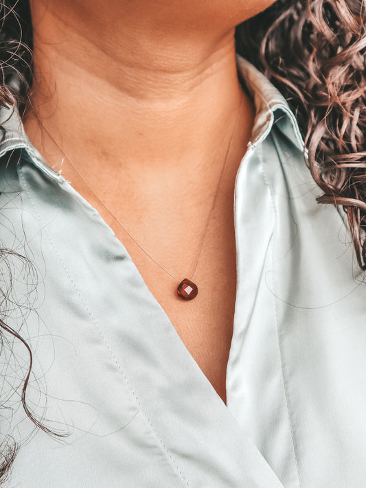 Garnet Floating Silk Cord Necklace, January Birthstone