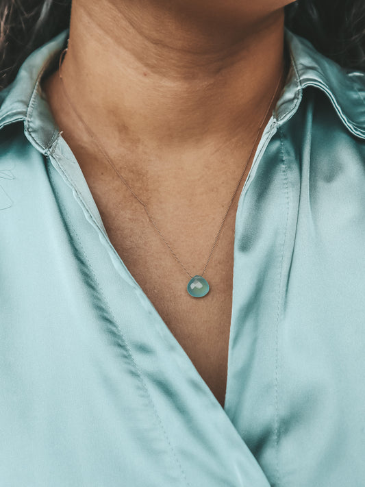 Blue Chalcedony Silk Cord Necklace, March Birthstone