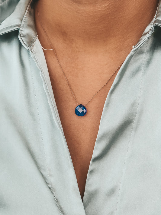 Blue Sapphire Silk Cord Necklace, September Birthstone